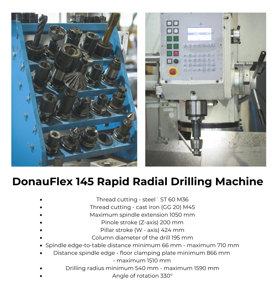 - Rádius vŕtania Min. 540 mm – Max. 1590 mm